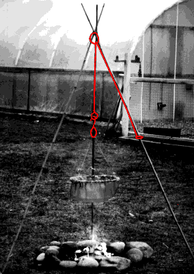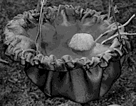 due to the demands of school and end of semester crunch. With more time, I would explore the optimum method of hot rock cooking. I find it interesting that in trial six two rocks got the water to boiling in six minutes, while in trial seven, three rocks had it boiling in four and a half. It raises the question of what is the optimum time to number of rocks to volume relationship. I successfully demonstrated that hot rock cooking is faster than cooking in a leather pot over the fire, but have yet to determine just how fast the hot rock method can be. Should people with fire pits put away their microwaves? [Feb 21, 1997: Received an email from Bonnie (Dakona) Farner which calls into question my assumption that cooking by this method is 'quick'. While she is sceptical of the skin-pot-over-fire method, she notes from experience that cooking a stew with the hot rock method takes hours. She also includes the ingredients for a tried and tested hot rock stew! Full text of her message is included here.] It would also be a good idea to make a special trip to a stream to collect unweathered igneous cobbles which could be reused over many trials without disintegrating. Better yet, send a geologist or someone experienced with construction and operation of sweat lodges, since exploding sedimentary rock is unwelcome in that situation as well. In presentation of this project in tutorial, Michael Wilson observed that perhaps the reason the pots failed to boil over the flames is that the energy being released by steam was equivalent to that coming in from the flames, and that if the diameter of pot the were less this might be somewhat mitigated. TA Bob Muir wryly noted that perhaps it would be simpler to just put a lid on it, a point which was made again by Lloyd Bogart (and Bert Kamphuis) by email, along with other insightful comments [Aug 30, 1996, personal correspondence ~ Jean Auel as well thinks a lid would be a good idea].